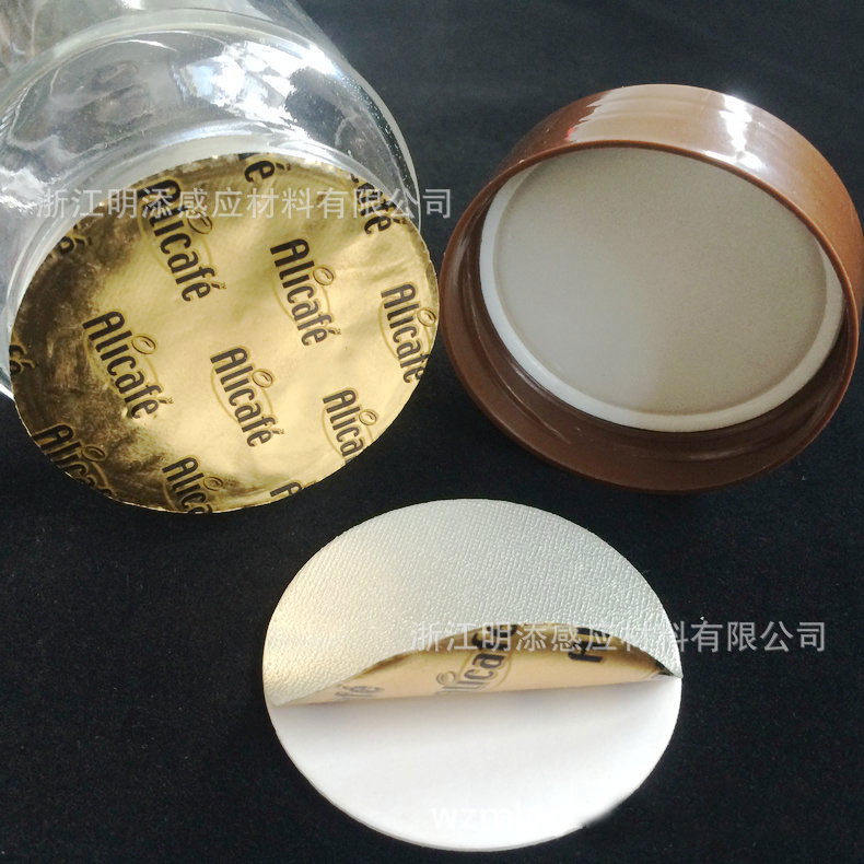 电磁感应铝箔封口膜是由纸板,铝箔,粘合剂,密封膜等组成一体,用电磁感应封口机通过非接能加热的方式,将热粘合层与瓶口密封。感应受热后垫纸分离,铝箔封口层与瓶口封合,达到密封防潮防漏效果,此外还具有防伪性和防盗性。